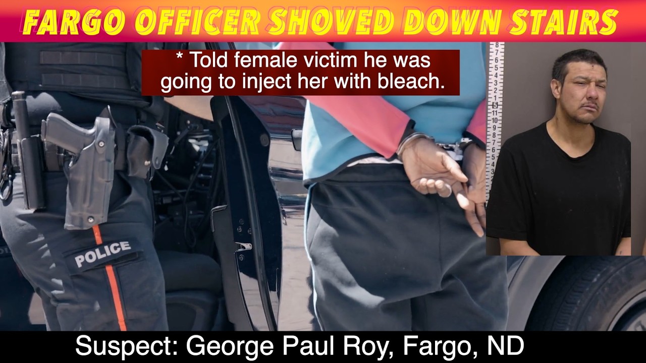FARGO, ND (iNewZ.TV) A Fargo officer was shoved down the stairs, while arresting George Paul Roy, who allegedly told the female victim he was going to inject her with bleach.