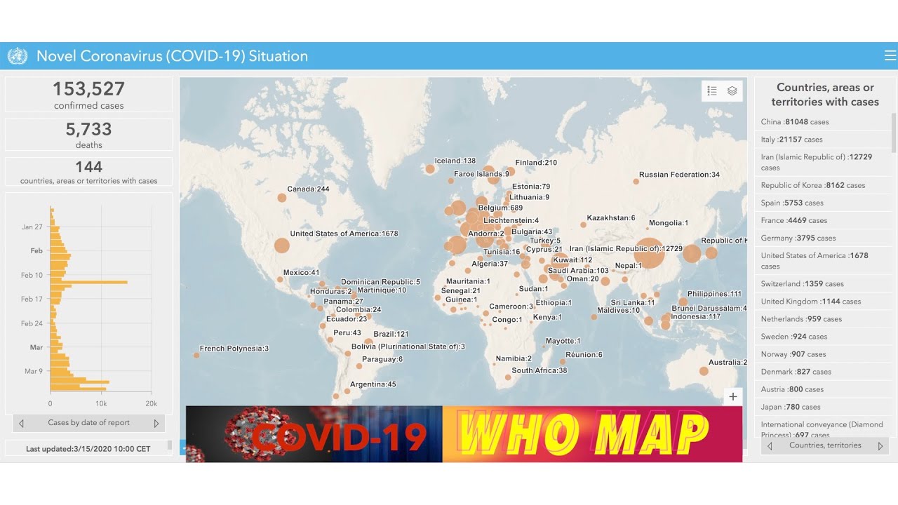 GENEVA, SWITZERLAND (iNewZ.TV) The World Health Organization has a worldwide map that now shows the United States rising to 8th place worldwide in the number of Coronavirus cases.