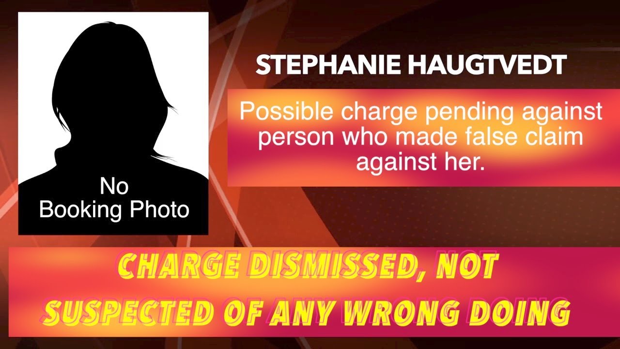 GRAND FORKS, ND (iNewZ.TV) The criminal charge against Stephanie Haugtvedt of Grand Forks has been dismissed. She is not suspected of any wrong doing, after a person made a false claim against her. Possible charges against that person are pending.