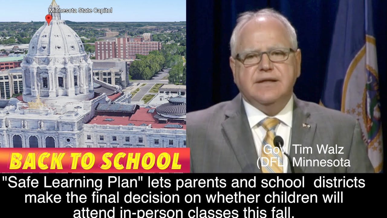 ST. PAUL, MN (iNewZ.TV) Minnesota Governor Tim Walz has unveiled the "Safe Learning Plan for back to school this fall. Basically, the final decision come down to individual school districts and parents.