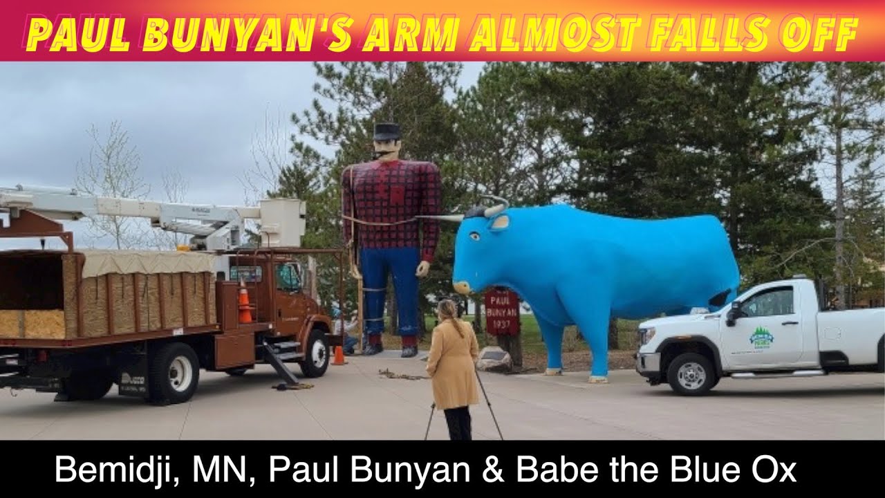 BEMIDJI, MN (iNewZ.TV) Paul Bunyan almost lost his arm today in Bemidji, Minnesota, The right arm of the iconic Paul Bunyan and Babe the Blue Ox was apparently rescued by a City Councilman.