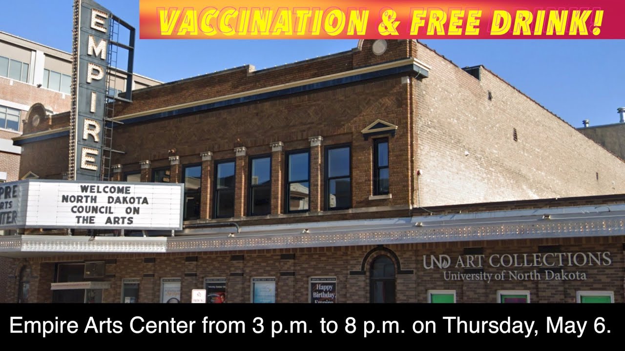 GRAND FORKS, ND (iNewZ.TV) Get a COVID vaccination and free drink at the Empire Arts Center in Grand Forks this Thursday.