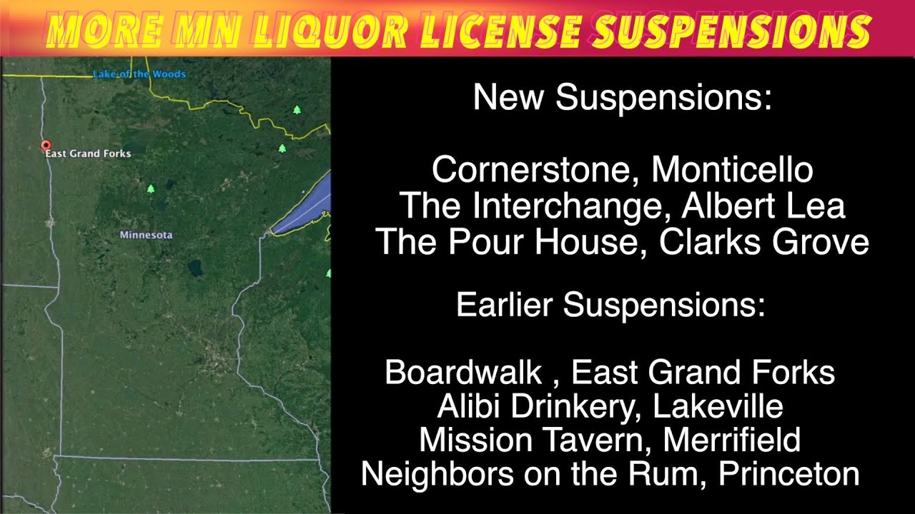 ST. PAUL, MN (iNewZ.TV) The Minnesota Department of Public Safety has announced that 3 more establishments have had their liquor licenses suspended on this Saturday.