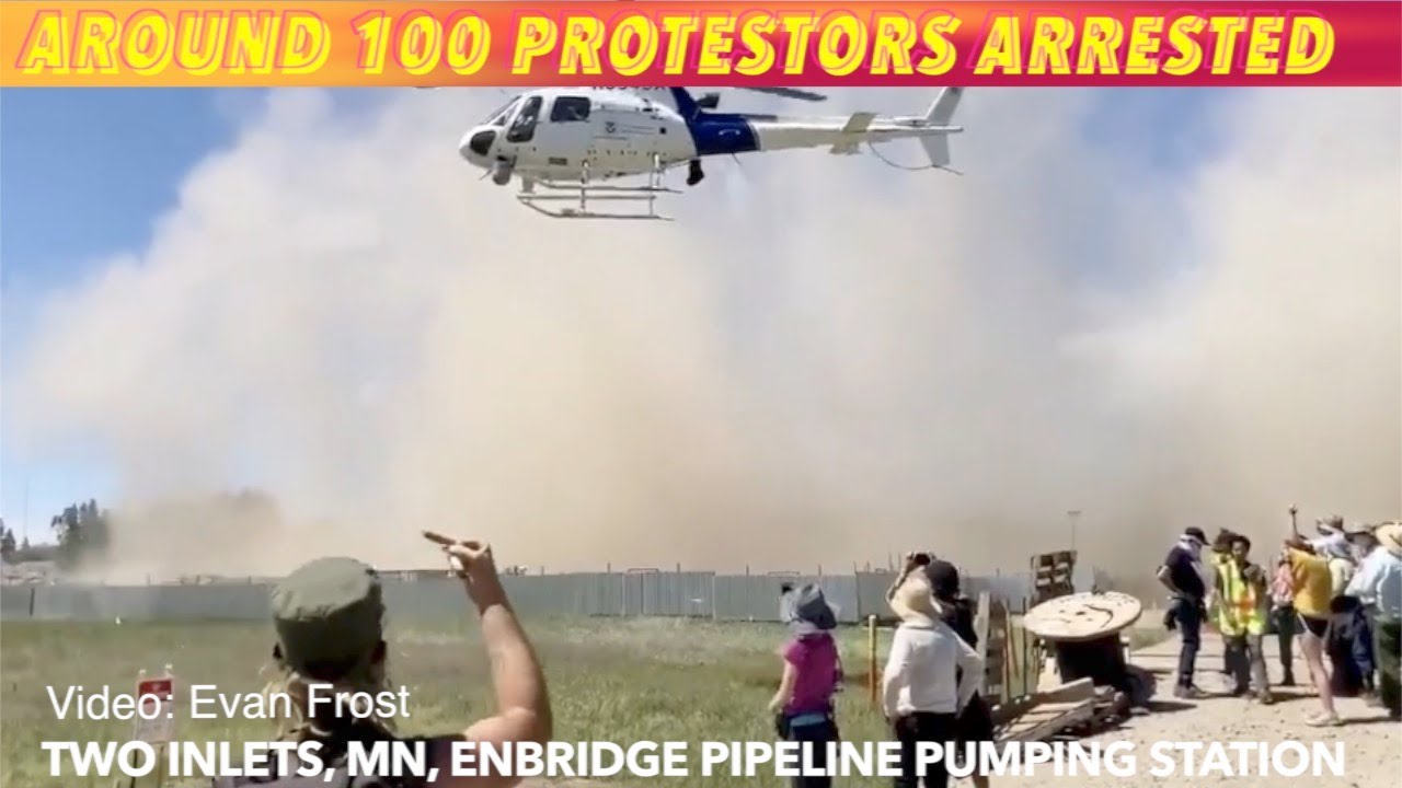 TWO INLETS, MN (iNewZ.TV) Around 100 protestors were arrested at Two Inlets, Minnesota on Monday, after climbing over a fence into a pumping station, while other refused to leave the area following their gathering.