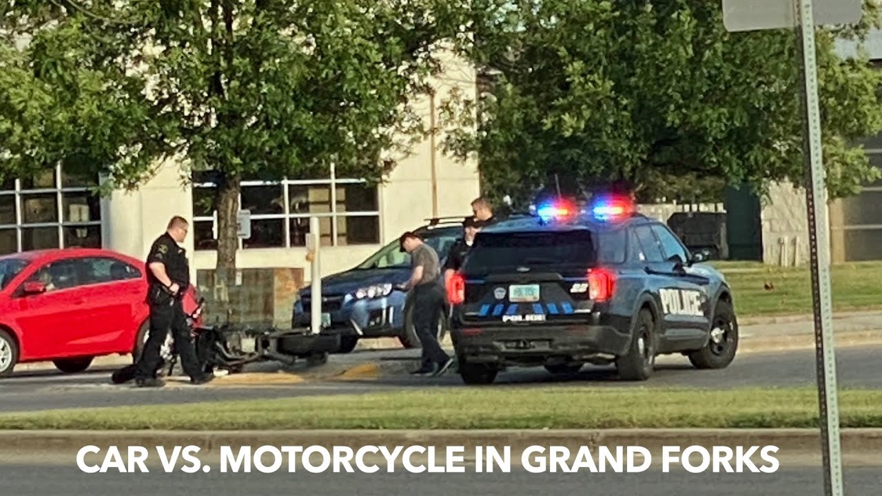 GRAND FORKS, ND (iNewZ.TV) Motorcycle verses car crash in Grand Forks Saturday evening. No serious injuries. No citations.