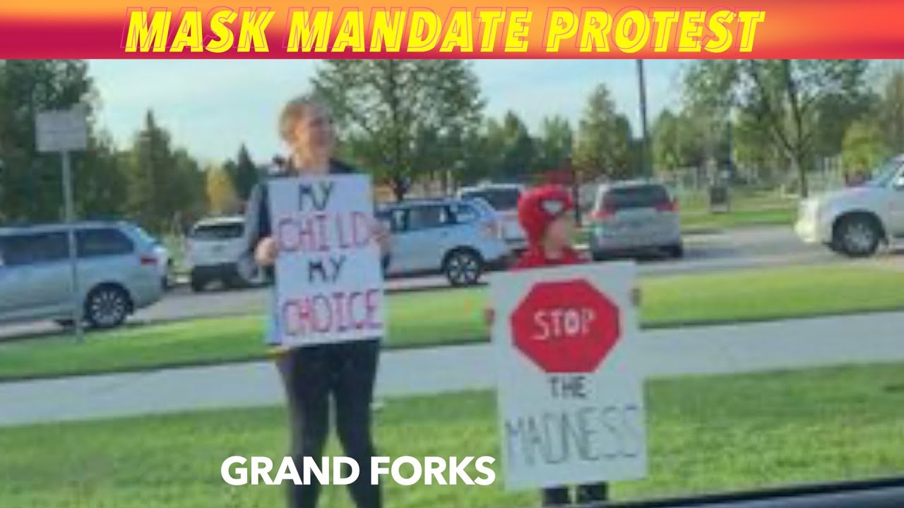 GRAND FORKS, ND (iNewZ.TV) A short lived mask mandate protest in Grand Forks Monday morning with about 2 dozen people.