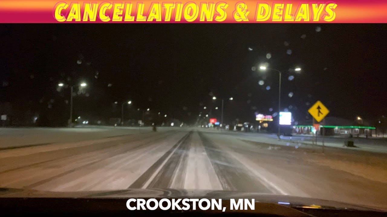 CROOKSTON, MN (KROXAM.com) A look at cancellations and delays around Crookston due to icy roads on this Friday morning.