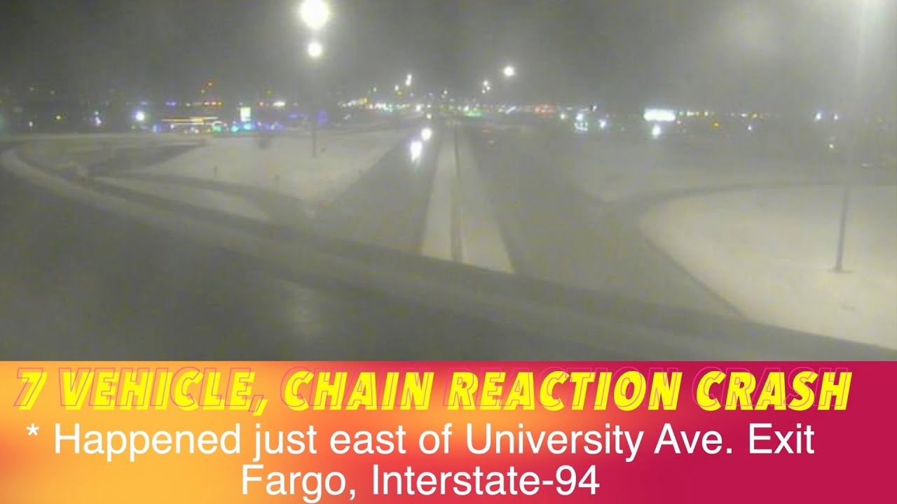 FARGO, ND (iNewZ.TV) We had a 7-vehicle, chain reaction crash on Interstate-94 just east of the University Avenue Exit in Fargo Tuesday evening.