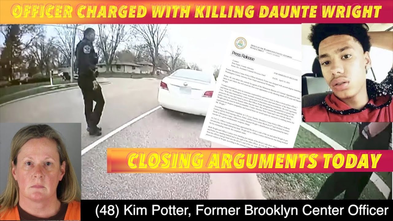 BROOKLYN CENTER, MN (iNewZ.TV) Closing arguments are scheduled today in the trial of former Brooklyn Center, Minnesota police officer, Kim Potter. She's charged with shooting to death a man during a traffic stop.