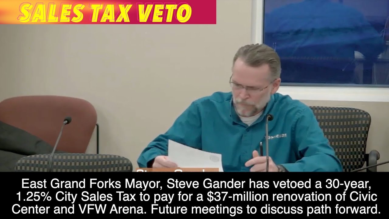 EAST GRAND FORKS, MN (iNewZ.TV) East Grand Forks Mayor, Steve Gander vetoed the Council's proposed city sales tax Tuesday evening. The tax would be used for renovations at the Civic Center and VFW Arena.