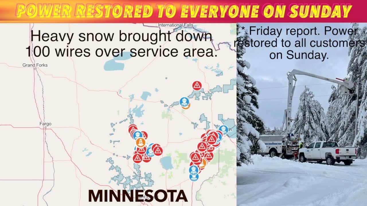 MINNESOTA (iNewZ.TV) Crews finished restoring power to thousands across Minnesota on Sunday, after heavy snow knocked down hundreds of power lines.
