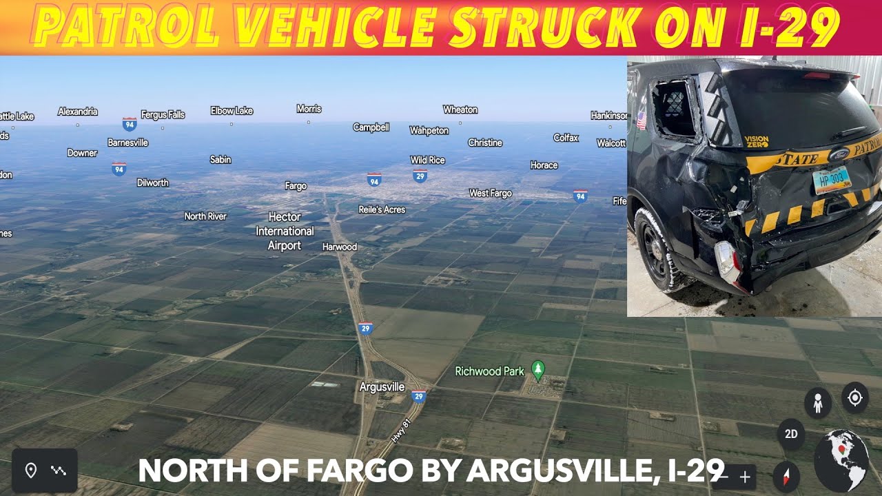 ARGUSVILLE, ND (iNewZ.TV) No injuries after a parked North Dakota Highway Patrol vehicle was struck on Interstate-29 just north of Fargo Thursday evening. Several other drivers hit the ditch.