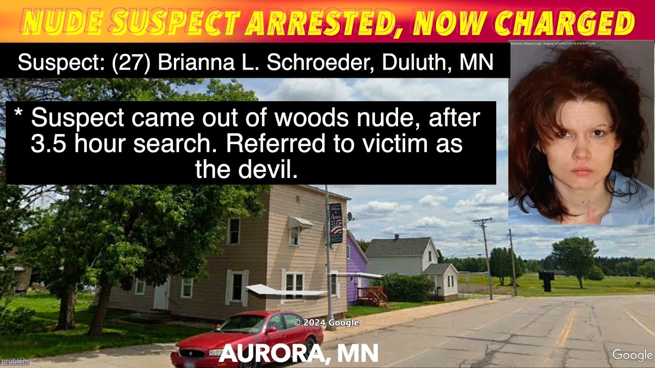 AURORA, MN (iNewZ.TV) We have an update to a stabbing in Aurora, Minnesota on Sunday. The suspect came out of the woods nude, after a 3.5 hour search and has now been charged. Brianna Schroeder of Duluth has been charged with 1st Degree Assault-Great Bodily Harm.