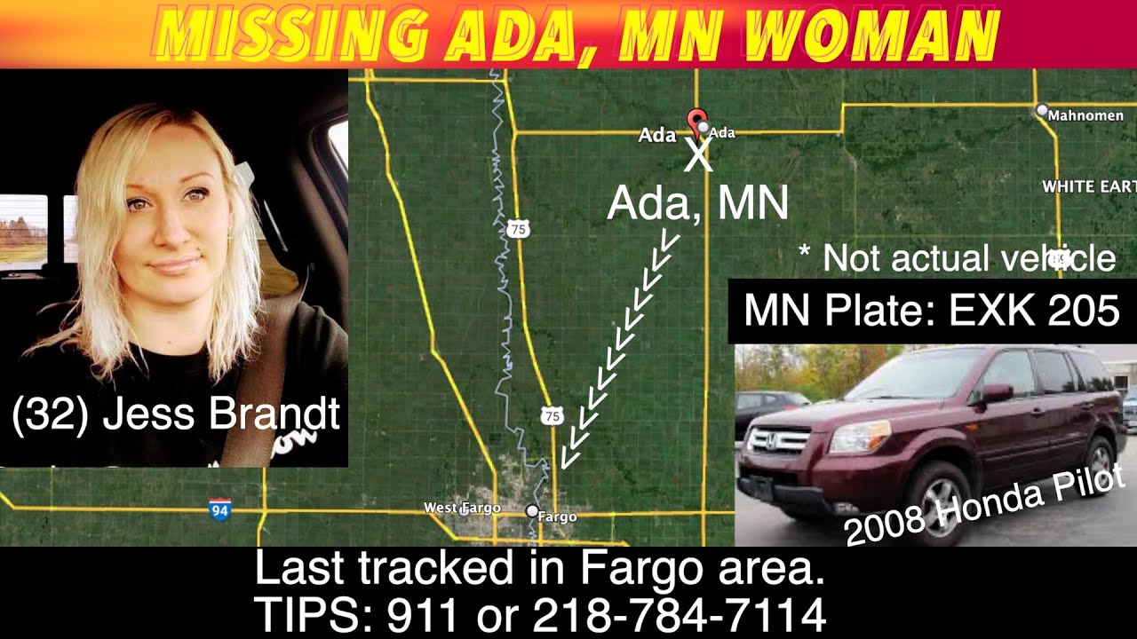 ADA, MN (iNewZ.TV) We have a missing woman from Ada, Minnesota. Jess Brandt went to a doctors appointment in Fargo on Tuesday morning and hasn't been heard from since.
