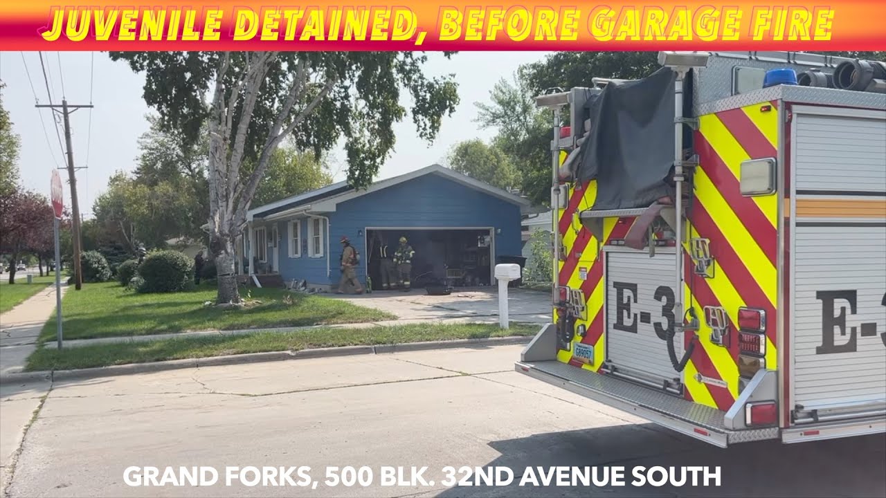 GRAND FORKS, ND (iNewZ.TV) A juvenile was apparently detained before a small garage fire in Grand Forks during this Monday noon hour.