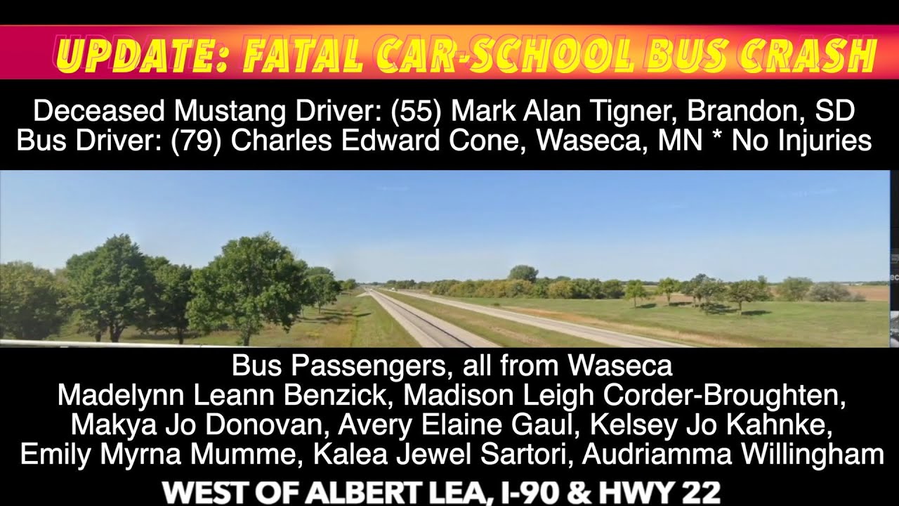 FAIRBAULT COUNTY, MN (iNewZ.TV) The Minnesota State Patrol has identified everyone in a fatal car-school bus crash on Interstate-90 in Southern Minnesota Saturday evening.