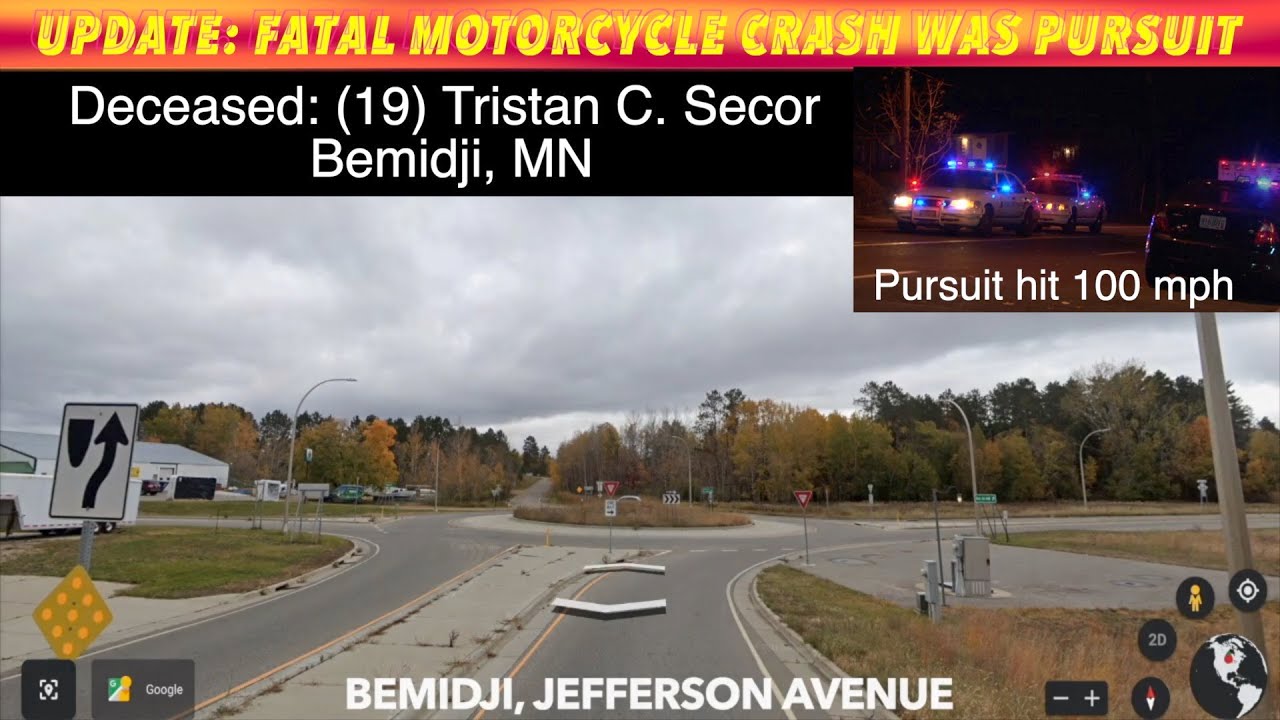 BEMIDJI, MN (iNewZ.TV) The Beltrami County Sheriff says a fatal motorcycle crash in Bemidji, Minnesota Tuesday night was the end result of a pursuit. Tristan Secor of Bemidji died in the crash.