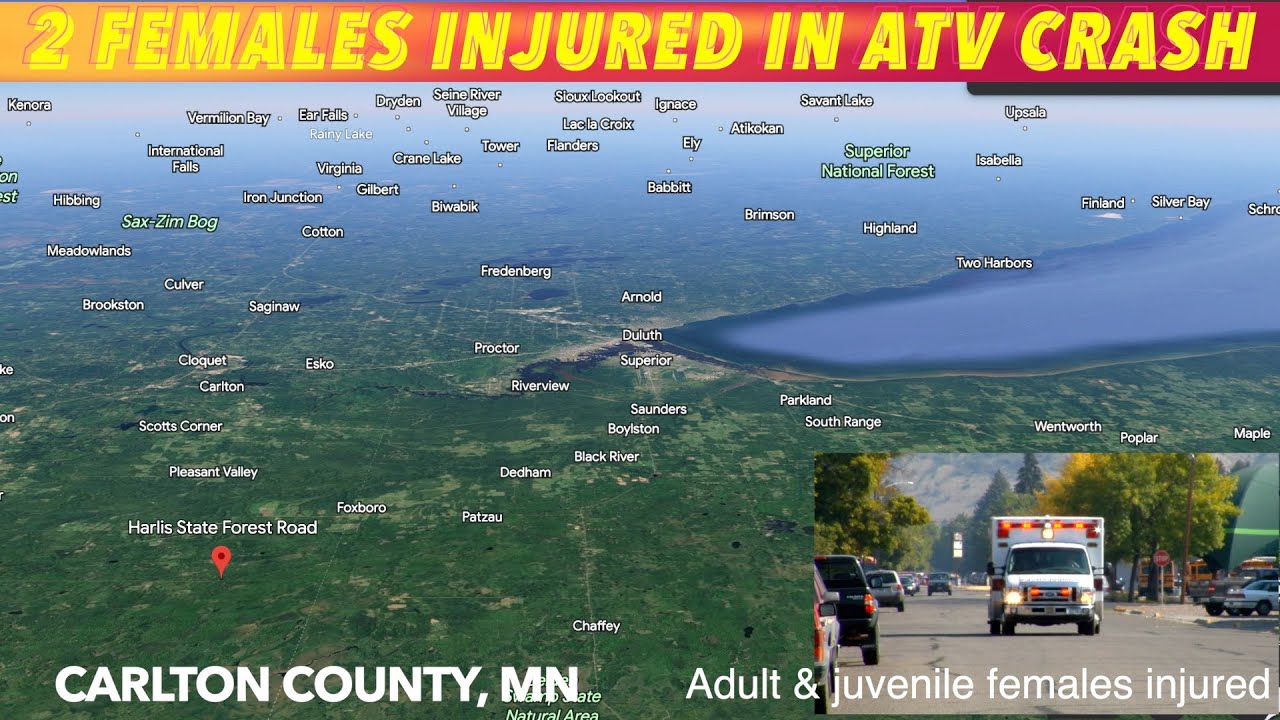 CARLTON COUNTY, MN (iNewZ.TV) An adult female and juvenile female passenger were both injured when their ATV crashed into a tree in Carlton County, Minnesota on Saturday.