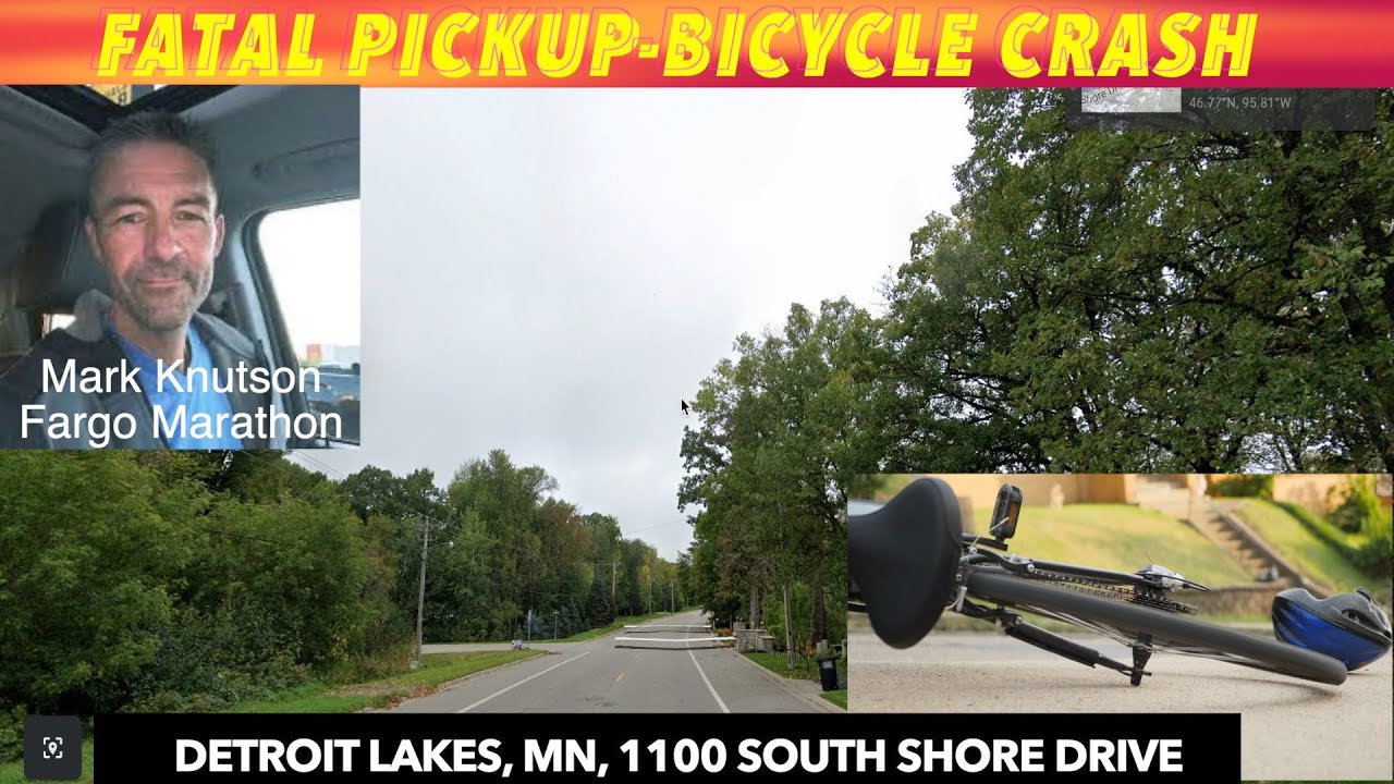 DETROIT LAKES, MN (iNewZ.TV) We had a fatal crash between a pickup and bicyclist in Detroit Lakes, Minnesota Sunday morning. Fifty-three year old Mark Knutson, the Director of the Fargo Marathon died at a Fargo hospital following the crash.