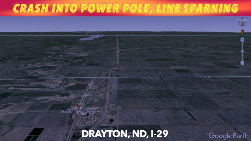 Crash Into Power Pole On I-29 By Drayton With Sparking Power Line