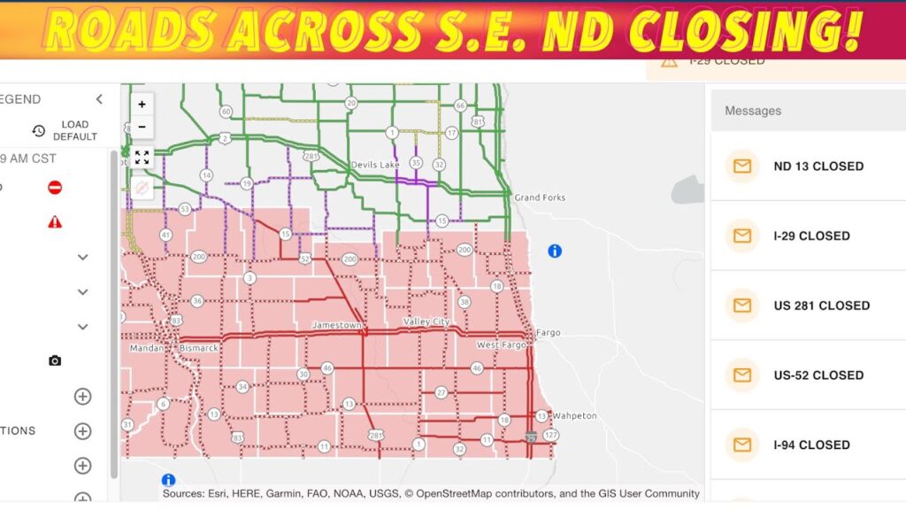 NORTH DAKOTA (iNewZ.TV) Heavy blowing snow is closing down roads across southeast North Dakota early Wednesday morning.